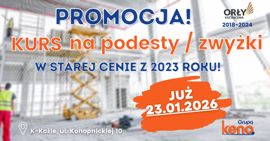 🔥 Zgarnij PROMOCJĘ – kurs nadal w starej cenie z 2023 roku! Kurs dawnej kategorii IP tzn. podesty ruchome przejezdne (zwyżki) w cenie 849 zł z UDT!